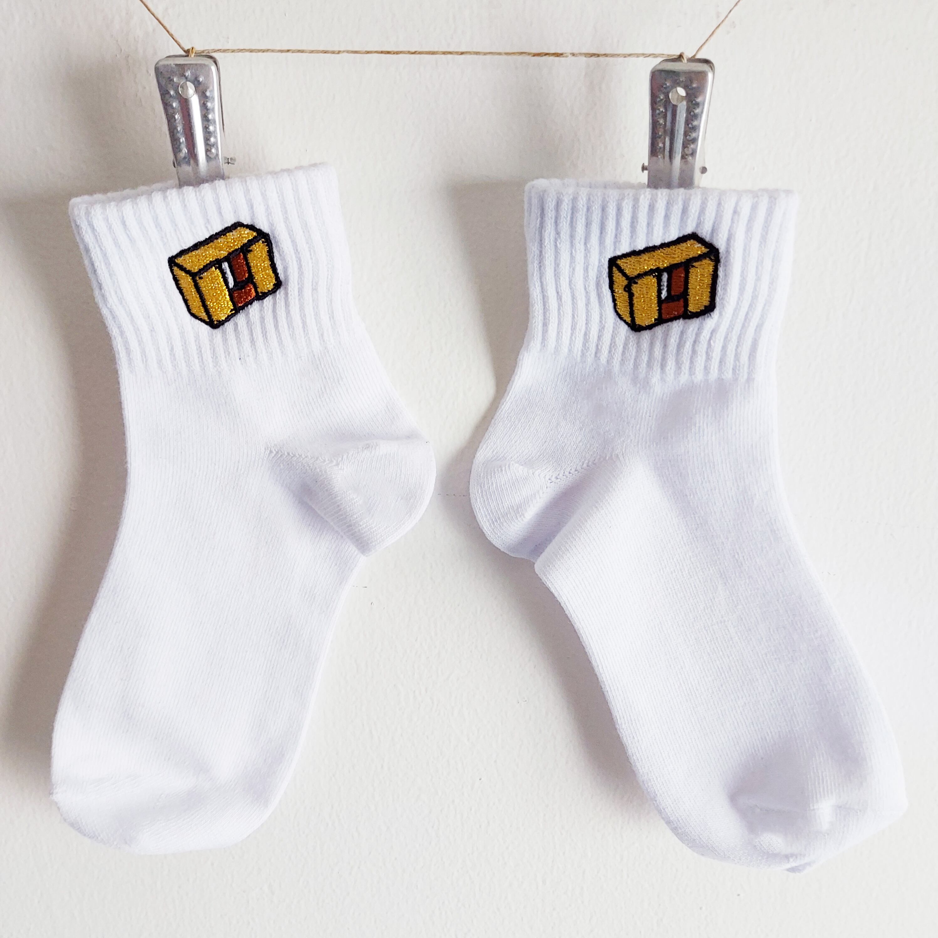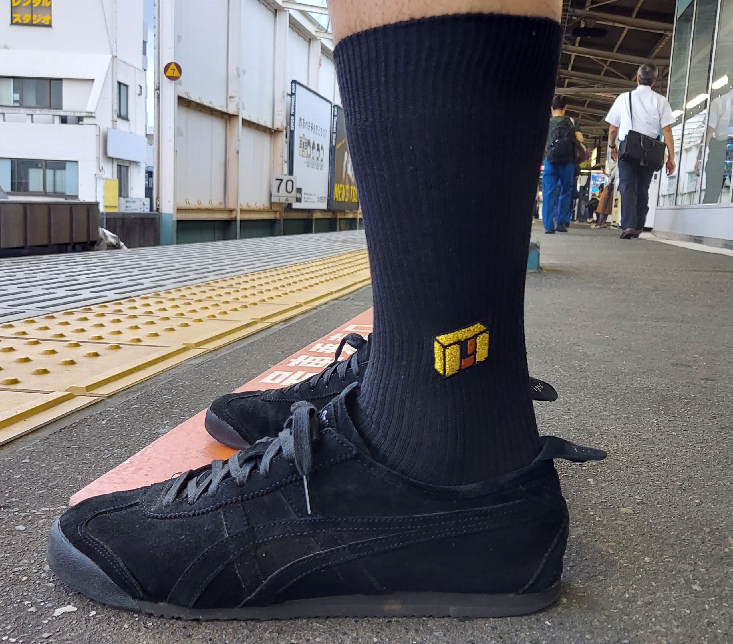 刺繍位置は、スニーカーとズボン裾からちょっと覗くくらいの位置。