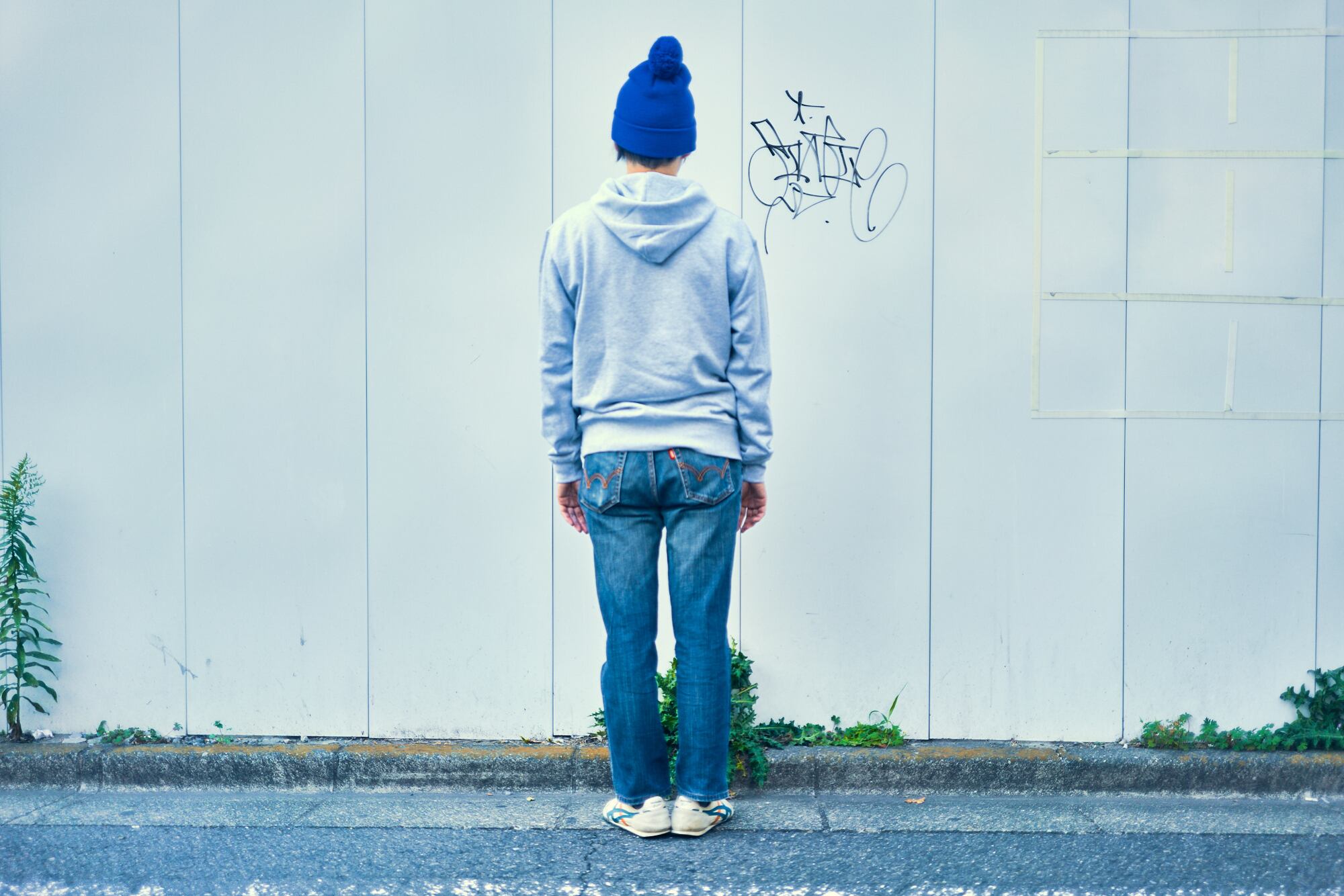 着用写真は亮さん170cm、灰-Lサイズ着用です。